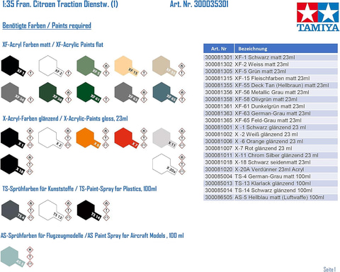 着座姿勢のドライバー人形付き。デカールは、ドイツ陸軍2種とフランス軍所属車に加え、フランス民間車の4種類が付属する。