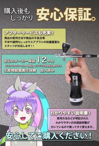 エアブラシは、aurochs充電式エアブラシver.2.5spと同じエアアジャスター装備の0.3mm径、ハイエンドモデルのダブルアクションタイプのハンドピースが付属する。