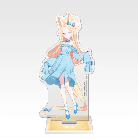 全高約27センチで「ナギサ」、「セイア」、「ミカ」のビジュアルを描いたボード。アクリル製で、見つめ合っているようにテーブルなどの向かいに置いて楽しめる。