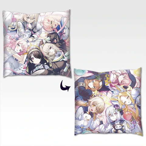 表裏の両面に描き下ろしイラストが描かれたクッションで、サイズは約50センチ四方。くじの最後の1個を引くと手に入るラストワン賞。
