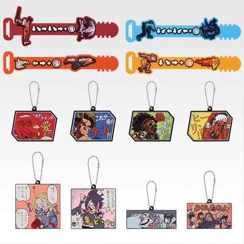 その他に、VS画面を再現した「ヘッドフィギュア」、操作タイプとランクマッチ称号をデザインした「メタルチャーム」、必殺技コマンドタイ、セリフチャーム、\がんばれ/ジュリちゃんチャームの3種類の「ラバーアソート」などがラインナップしている。
