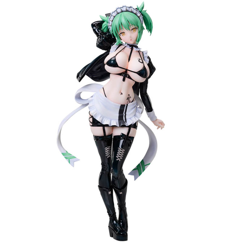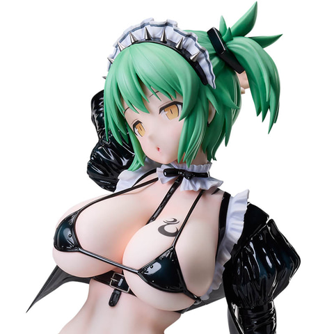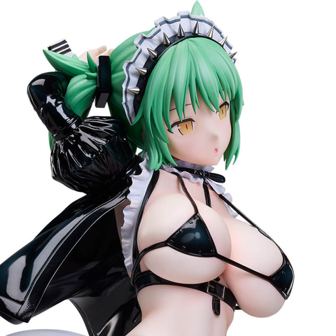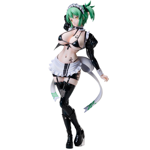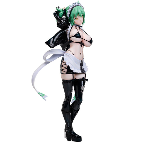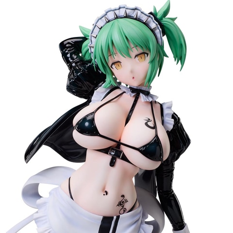 「閃乱カグラ×ドン・キホーテ」コラボにて描かれたイラストをモチーフに、キャラクターデザイナー・イラストレーターの八重樫南氏のデザインを忠実に立体化しており、ボンデージとメイドという異なる要素を融合させたコスチュームは、質感表現や細部の造形まで丁寧に再現。しなやかなポージングやメイド+ボンデージ衣装のディテールが1/4スケールならではの存在感を際立たせている。