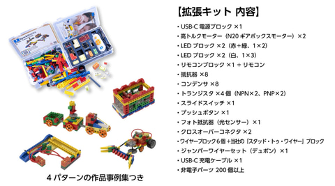 特徴:光る・鳴る・動く電子ギミック/配線不要/アプリ不要/本物の回路図記号を採用/学習ガイド付き