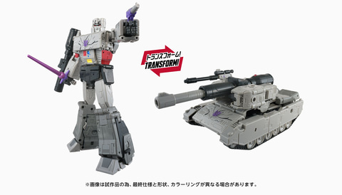 本商品は、「TRANSFORMERS THE MOVIE」でオプティマスプライムとの最後の激闘を演じたメガトロンを「TS-12メガトロン」(別売り)をベースに破壊されたボディと頭部を新金型で再現したスペシャル仕様モデル。ロボットモードから戦車に変形が可能で、映画本編で使用したレーザーダガーのほかにオプティマスプライムに致命の一撃を与えたブラスターが新たに付属し、映画の名シーンを再現可能となっている。