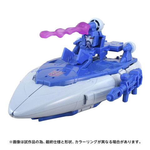 「TRANSFORMERS THE MOVIE」で初登場したスカージがMTMTEコレクションに登場。ロボットモードからホバークラフト型のUFOに変形する。