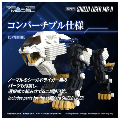 本商品は「ゾイド」シリーズに登場するライオン型ゾイド「シールドライガー」を武装強化した「シールドライガー・マークII」を1/100アクションプラモデル「リアライズモデル」シリーズで立体化。