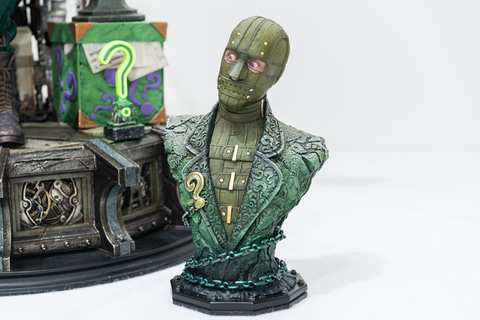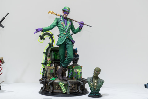 今回企業向けに開催された展示会にて本製品が展示されており、「リアルエリートマスターライン BRZRKR B」は、幾多の兵士を打ち抜くBの姿を1/4スケールで壮大に表現しており、「リアルエリートマスターライン バットマン(コミック) リドラー オール・イン・ワン(Design by Carlos D’Anda)」は、ステッキを片手にニヤリを微笑むリドラーの姿を1/3スケールでリアルに表現している。