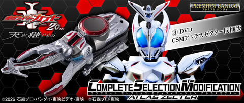 バンダイは、「【Blu-ray完全版】 『仮面ライダーカブト 20th 天を継ぐもの』 CSMアトラスゼクター同梱完全版を通販サイト「プレミアムバンダイ」ほかにて4月3日16時より予約受付を開始した。発送は2027年6月を予定し、価格は33,000円。