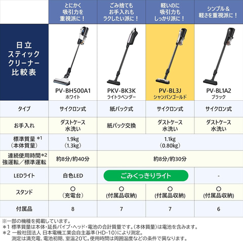 期間中、「パワかる サイクロン式 CV-SP300M N ライトゴールド」と「ラクかるスティック PV-BL3J」がお買い得になっている。