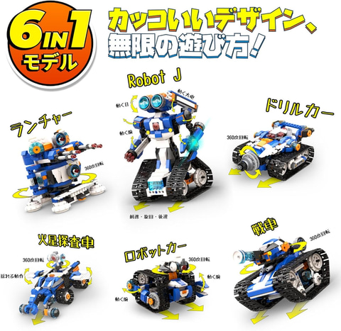 本商品はRC「ロボットJ」の組み立てやプログラミングなどを楽しめるキット。リアリティを追求したデザインと柔軟な手関節を持つ6種類の異なるモデルが組み立てられる。
