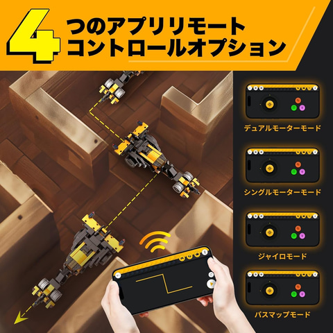 本商品は、ブロックを用いてオフロード車、ロケットカー、ピックアップトラック、ロボバグ車の4種類のカーモデルを組み立てられるキット。300以上のブロックと車両用ステッカー、1つのコントロールモジュール(2つの高速モーター付き)、2つのLEDライト、1冊の組み立てマニュアル、1つの分類トレイが含まれる。