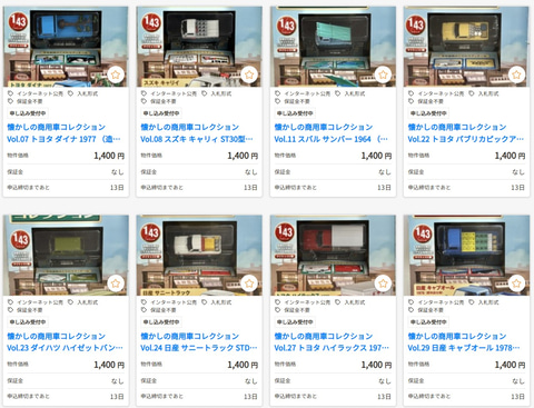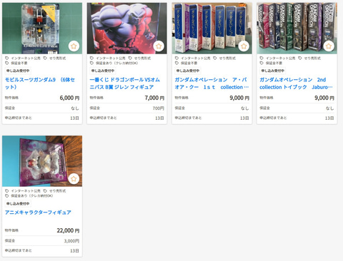 KSI官公庁オークションにて、プラモデルやフィギュア、トレーディングカードなどが出品されている。