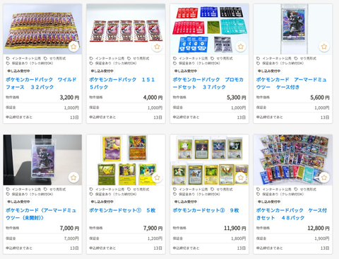 ポケモンカードのパックなども出品