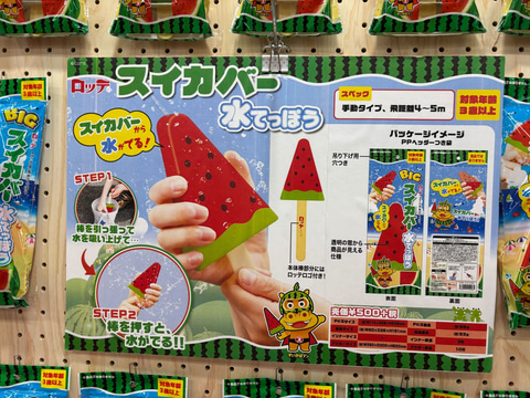 カヨ通商は、おもちゃ「ロッテ スイカバー水てっぽう」を発売している。価格は550円。