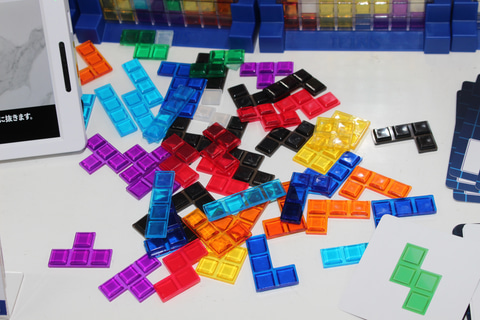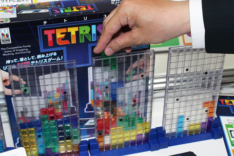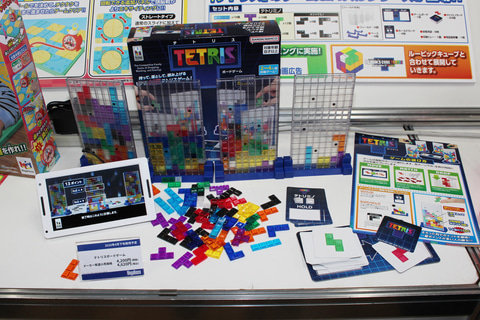 そしてもう一つの新製品「テトリスボードゲーム」は、人気のビデオゲーム「テトリス」を2~4人向けの対戦型ボードゲームに仕立てたものだ。