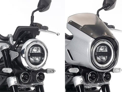 スライドマークは3種類のカラーパターンが用意されており、ヘッドライトカウル、ラジエターグリルもパーツ化。センタースタンド付きとなっている。