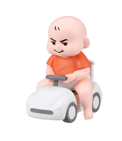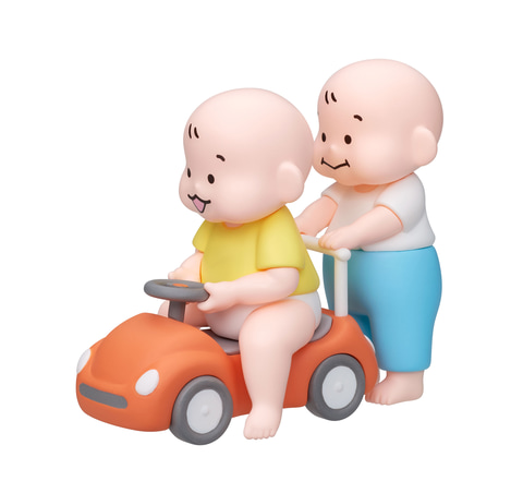 本製品はイラストレーター、おおのたろう氏が描く柔らかいタッチの赤ちゃんが子供用自動車おもちゃで遊ぶ姿を再現したフィギュア。赤ちゃんと自動車は取り外しが可能で、車輪が回転する。