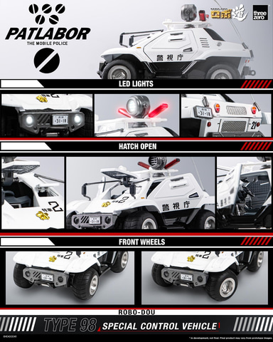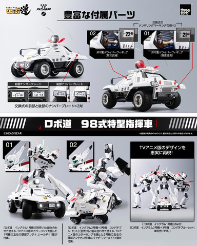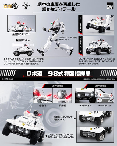 本製品は、アニメ「機動警察パトレイバー」に登場する「98式特型指揮車」を、同社のアクションフィギュアブランド「ロボ道」から1/35スケールのミニカーで商品化したもの。