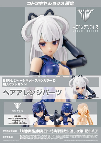 本製品は、同社の美少女プラモデル「メガミデバイス」シリーズより、新機軸の素体シリーズのLサイズ「B1R-L シャーシキット」をスキンカラーCとスキンカラーDでそれぞれ商品化したもの。