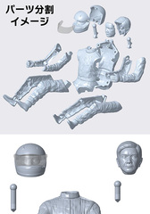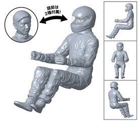 専用金型による男性ドライバーパーツが付属。運転中の着座状態を再現できる。パーツは頭部(2種)、胴体、手足(左右)、顔と胴体用ジョイントパーツで構成され、塗装接着式の仕様となっている。