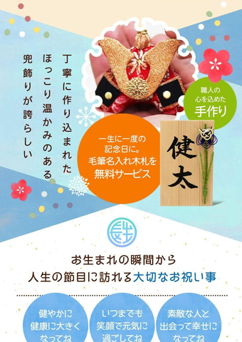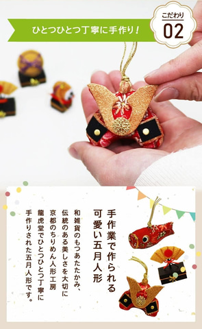 対象商品には、人形屋ホンポの平安義正作・兜飾りや、大阪長生堂のスタイリッシュな兜飾り、鯉のぼりのちりめん飾り、つるし飾りなど、五月人形がラインナップされている。