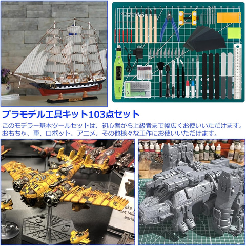 期間中、プラモデル工具キット103点セットや85点セット、ニッパーの5点セット、片刃ニッパー 工具セット(11点セット)などがお買い得になっている。