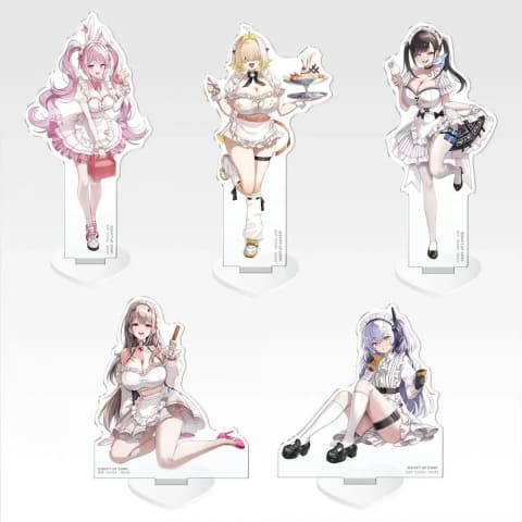 その他に、描き起こしイラストを使用した「テーブルマット」、「アクリルスタンド」や「勝利の女神:NIKKE」の美麗イラストが、飾って楽しめる「クリアポスター」、「パーフェクトメイドなラバーチャーム」などがラインナップしている。