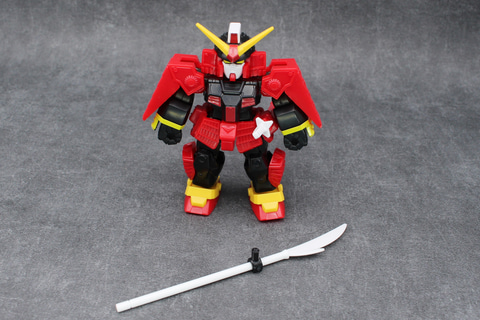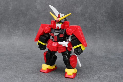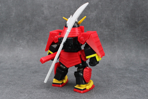 今回のラインナップの中ではかなり異色の機体。コミック『プラモ狂四郎』で登場した後、「SDガンダム」シリーズの「SD戦国伝」で人気を得る。外装の主な部分は鎧の形をしていて、武装も刀剣と徹底している。