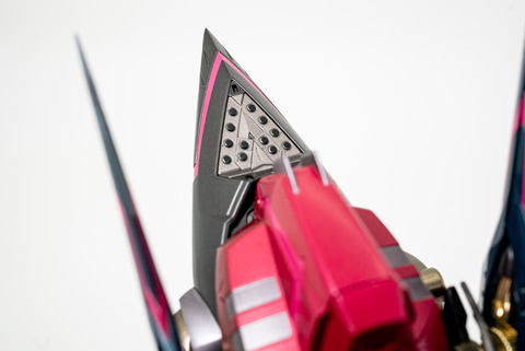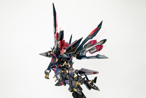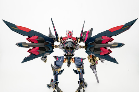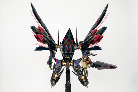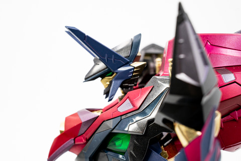 そして、オリジナルシリーズの途中から登場した飛行ユニットである「エナジー・ウイング」。とにかくボリューミーなサイズ感で、圧倒される。かなり重量があるナイトメアフレームを浮遊させるには、これくらい大きくないといけないのだろう。ちなみにエナジー・ウイングには開閉ギミックもついているので、飛翔シーンの時は開くのを忘れずに!
