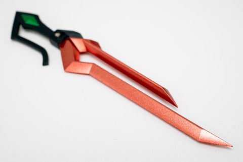 ナイトメアフレームの武装としては、MVSも忘れてはいけない。「鞠熾天」のMVSには十手を思わせるデザインのものが用意されている。これを装備する場合は、持ち手が決まっているので、マニピュレーターを交換しよう。うまく持たせるのは難しいのだが、マニピュレーターの素材がやわらかいので根気よくつかませてくれ!