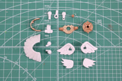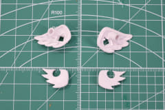 次に左腕部アーマーパーツと背中の「ウィライズモード」用の接続口を備えた小さい翼パーツを組み立てる。