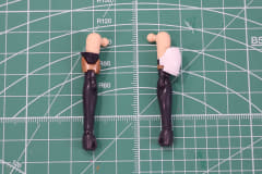 腕部の組み立ては二の腕、肘、前腕、手首とオーソドックスな構成。左右で二の腕のアクセサリが異なり、右腕は腕輪、左腕はアーマーとなっている。