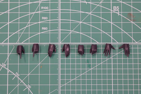 次に尻尾の組み立て。尻尾は3節で構成され、根元から先でグラデーションがかかるように明るい色合いとなる。根元は軸可動、中間関節はボールジョイントとなっている。