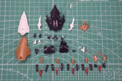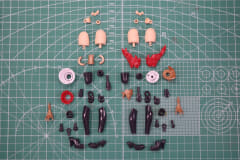 次に胴体。大きく胸元、腹部と腰部を合わせた2パーツで構成され、スカートと背中の小さな翼を組み合わせる。