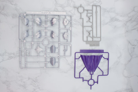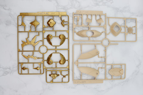 こちらのランナーは2枚。ゴールドは色が濃く、グロスインジェクションによる光沢が目立っている。クリーム色のパーツにゴールドのパーツが見え隠れするデザインで、全体のアクセントになっている。