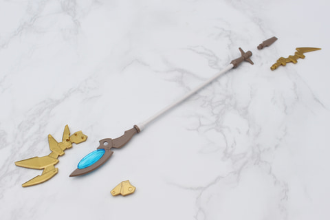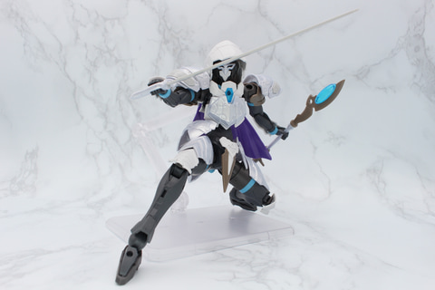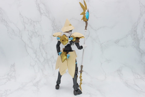 武器は自らが前線に立って戦うための細身のソードが付属。また魔法の力も生かすために、リーベルウィザードの魔杖の柄を短くするパーツが用意され、二刀流のようなスタイルを楽しめる。