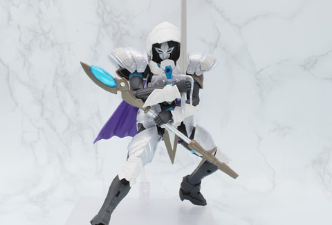 フード姿のシルエットは健在だが、新たなマスクとマントを着用したことにより、見た目の印象は変わっている。前線で戦うためのアーマーを身に着け、自身や仲間の装備に魔法の力を付与して強化するエンチャントを行うために、魔杖は取り回しのいい長さになった。