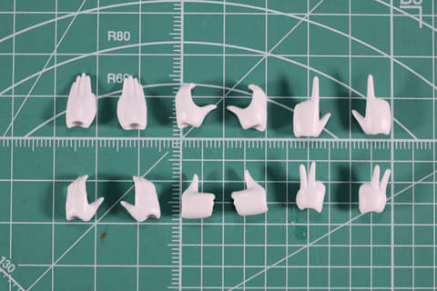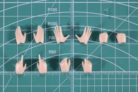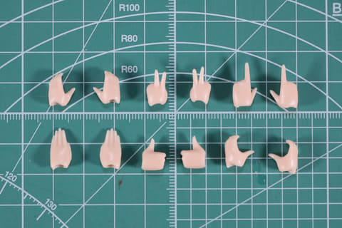 また、ハンドパーツも充実しており、フレッシュタイプは全11種類。握り手や平手といった共通のものに加え、サムズアップ手、ピース手、ハート手といったポージングの幅を広げるデザインが収録。