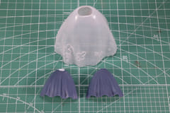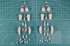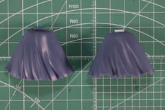 次に特徴的なスカートパーツの組み立て。スカートは全4種類が収録され、イラストにも描かれているロングスカートをはじめ、ショートスカートは通常、なびき、座りの3種類を組み立てる。