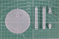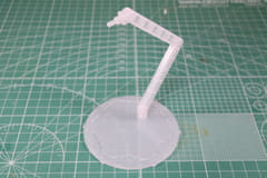 そして、展示ベースは乳白色のクリアパーツで組み立ては台座、支柱中間、支柱先端に軸可動があり、様々なディスプレイに対応できるようになっている。