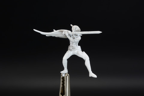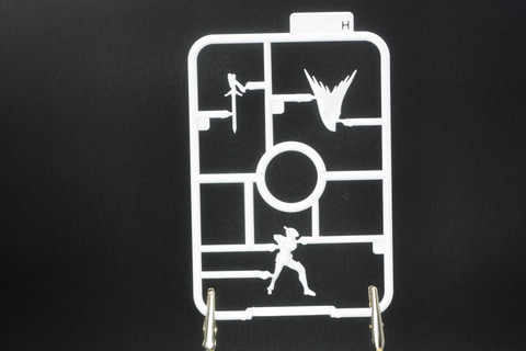 最後に組み立てるのが健のフィギュア。マントをなびかせ、ガッチャマンフェンサーを構える姿は、『ガッチャマンF』を象徴する姿ともいえる。このフィギュアを組み立てるには接着剤が必須となる。今回はモールドを浮き立たせる処理のみ行ったが、細かく塗装することでより劇中イメージに近づけることも可能だ。