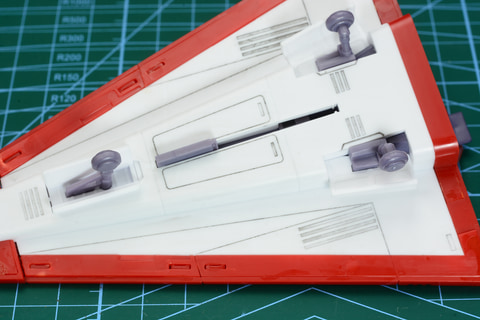 組み立て手順は各メカを組み立て、合体するという形で進める。まずは大鷲の健が搭乗する「ガッチャ1号」を組み立てる。鏃のような鋭角的な戦闘機で、胴体部分を組み立ててから、外側の赤いパーツをはめ込んでいく。