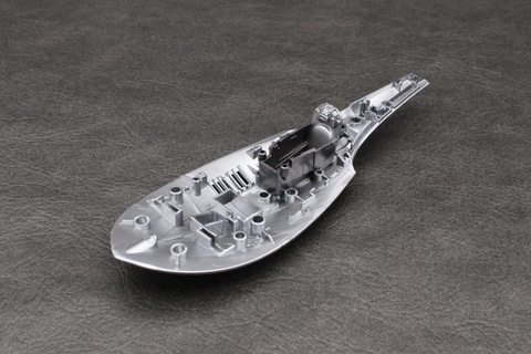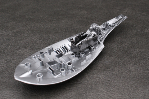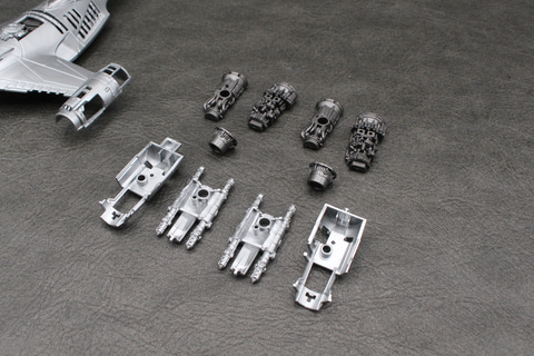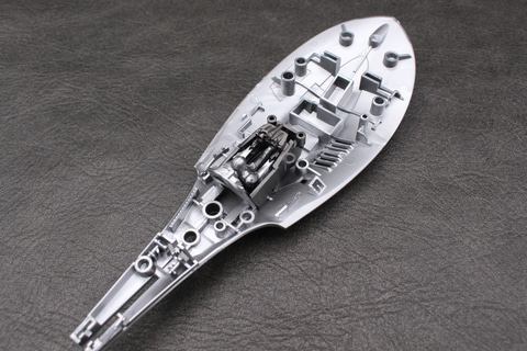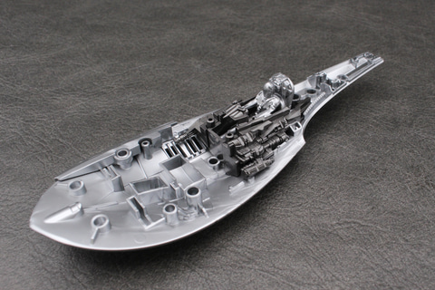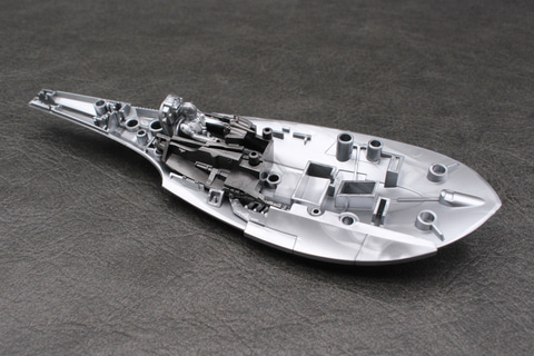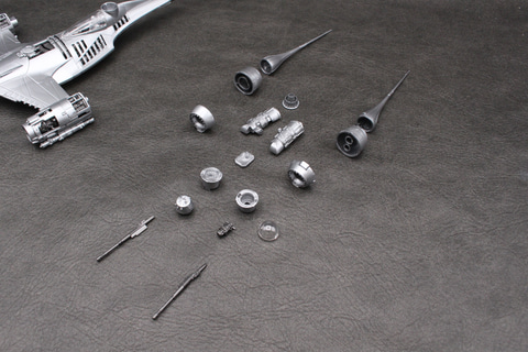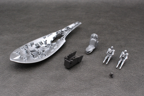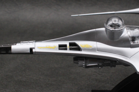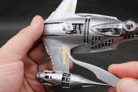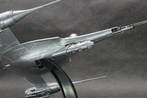 Xウイングのような可変翼機ではないため、可動部分はない。その分しっかり組み立てられるのは長所でもある。成形色の暗めのシルバーはこの機体のイメージ通りで、成形時に出るウェルドラインも機体の鈍い輝きを演出しているように思えばあまり気にならなかった。