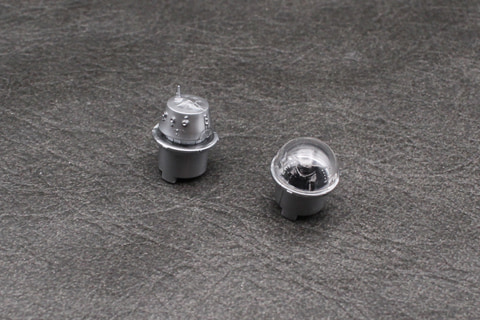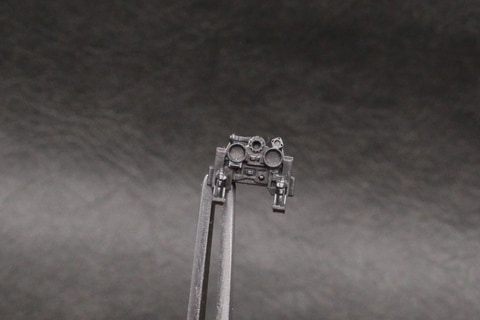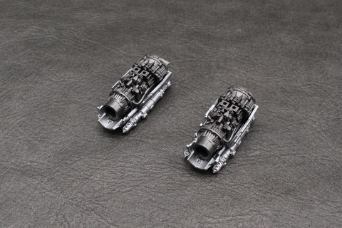 コクピット周辺のメカが完成したら、主翼と上面装甲を被せて両翼の亜光速エンジンを組み立てていく。エンジンの後ろに伸びているのはヒートシンクで、このパーツは左右を間違えないようにはめ込みのダボ穴の形状が違っている。コクピット後方のドロイドポートは外されてグローグーの席となったが、シーズン3ではペリから譲られたR5-D4がここに乗ることになり、そのための選択式パーツも用意。接着をしなければ交換も可能だ。