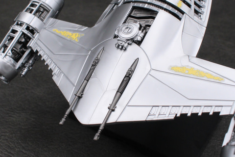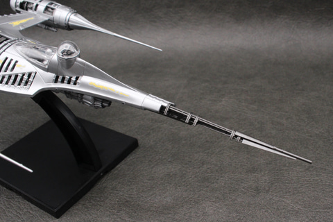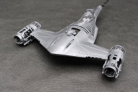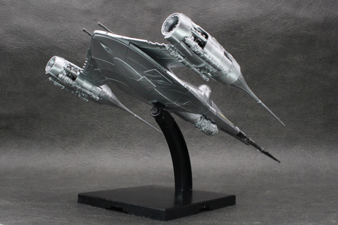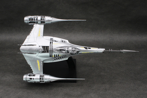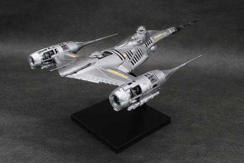かつて銀河共和国の惑星ナブーの王室用として運用されていたスターファイターを改修し、マンダロリアンの愛機となったこの機体。鈍色に輝く機体を成形色で再現し、搭乗者であるマンダロリアンや相棒のグローグー、そしてアストロメク・ドロイドのR5-D4のパーツなども付属している。