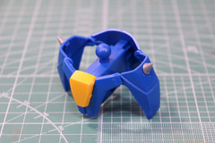腰部は股関節の引き出しを備えた基部にフロント、リア、サイドのアーマーで囲うシンプルな構造となっている。サイド・アーマーはフロントとリアで挟み込む構造のため、上下に開く可動を備えている。