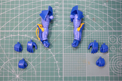 ハンドパーツは握り手、開き手、武器持ち手2種の合計4種を組み立てる。