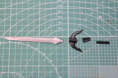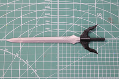 武器の回転剣(ドリルブレード)はシンプルに刀身、鍔、柄で構成されている。鍔パーツで刀身と柄を挟み込む形となっており、柄の部分は鍔から回転可動が可能となっている。