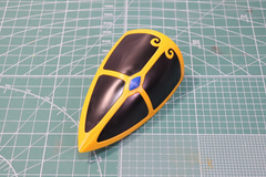 頭部は細かいパーツ分けで劇中に近いカラーリングが再現されている。特に額のイエロー部分は、極小パーツをはめ込んでの色分けとなっており、組み立ての際には紛失に気を付けてほしい。顔の前面はメタリックレッドの塗装済みパーツが使用され、印象的な顔つきの再現に加え、質感の違いも表現されている。
