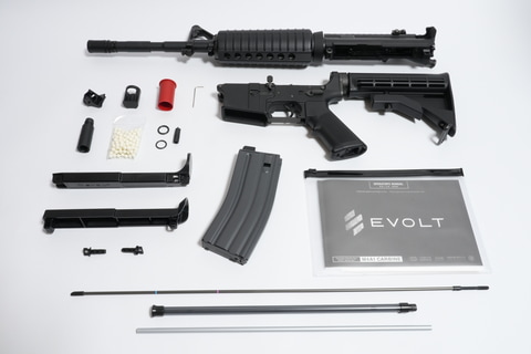 「エボルト」は、内部機構をほぼ完全に刷新した高い性能と、実銃同様のリアルな操作・外観を実現した新世代の電動ガンシリーズ。従来のスタンダード電動ガンや次世代電動ガンとは異なる設計思想を各部に採用しており、電子制御システム「M-SYSTEM タイプII」を搭載する点が最大の特徴だ。